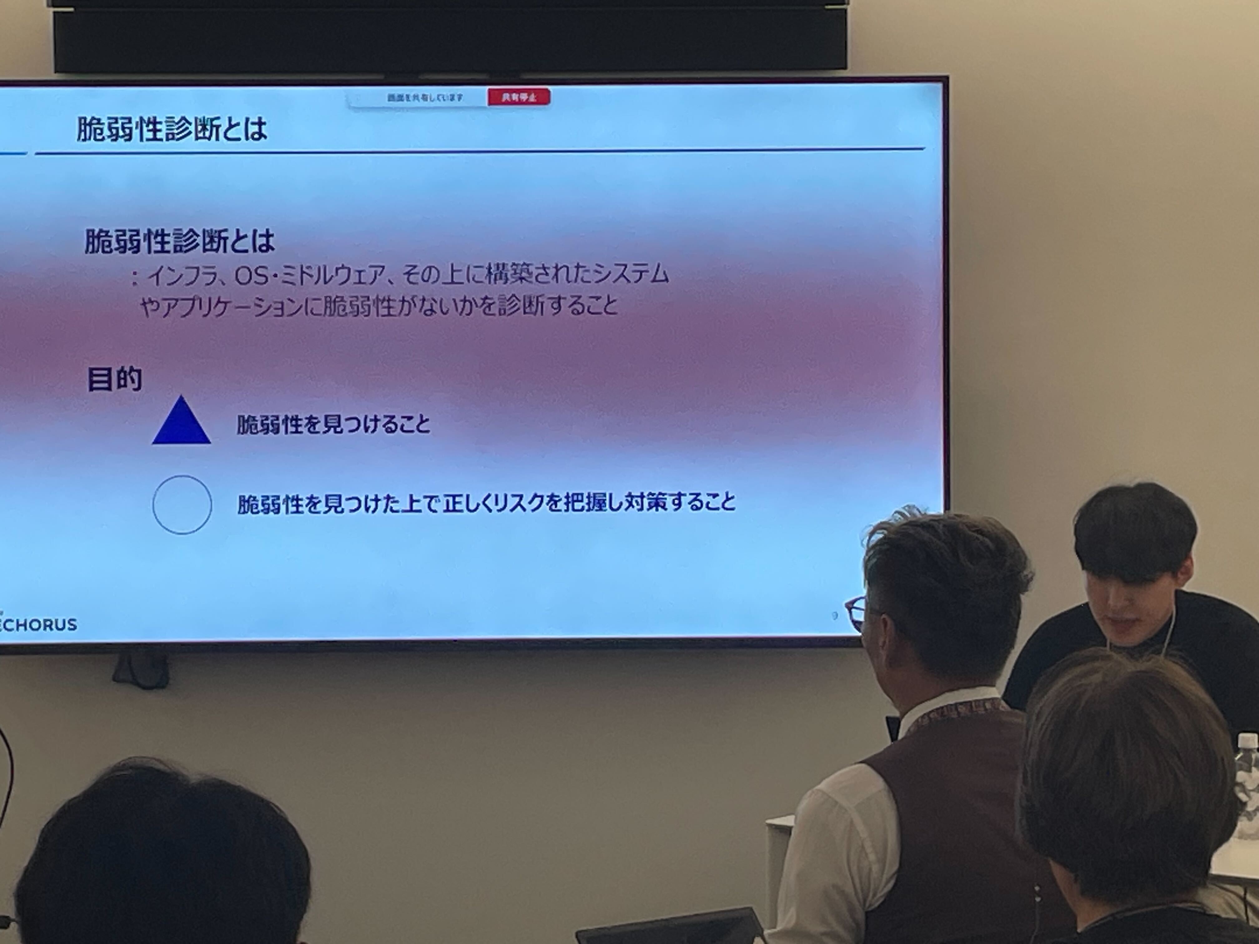 今回は脆弱性診断サービスについての内容理解と提案手法についてセッションしました。